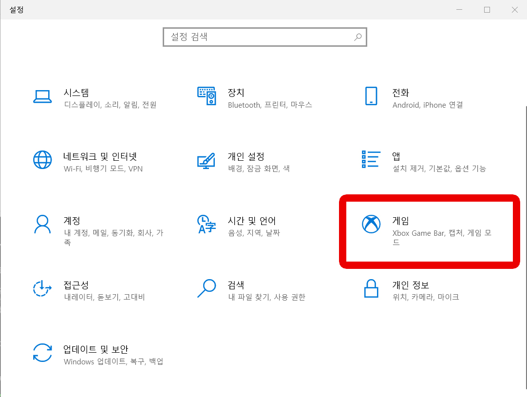 [윈도우] > [설정] > [게임] 순서대로 들어가 줍니다.