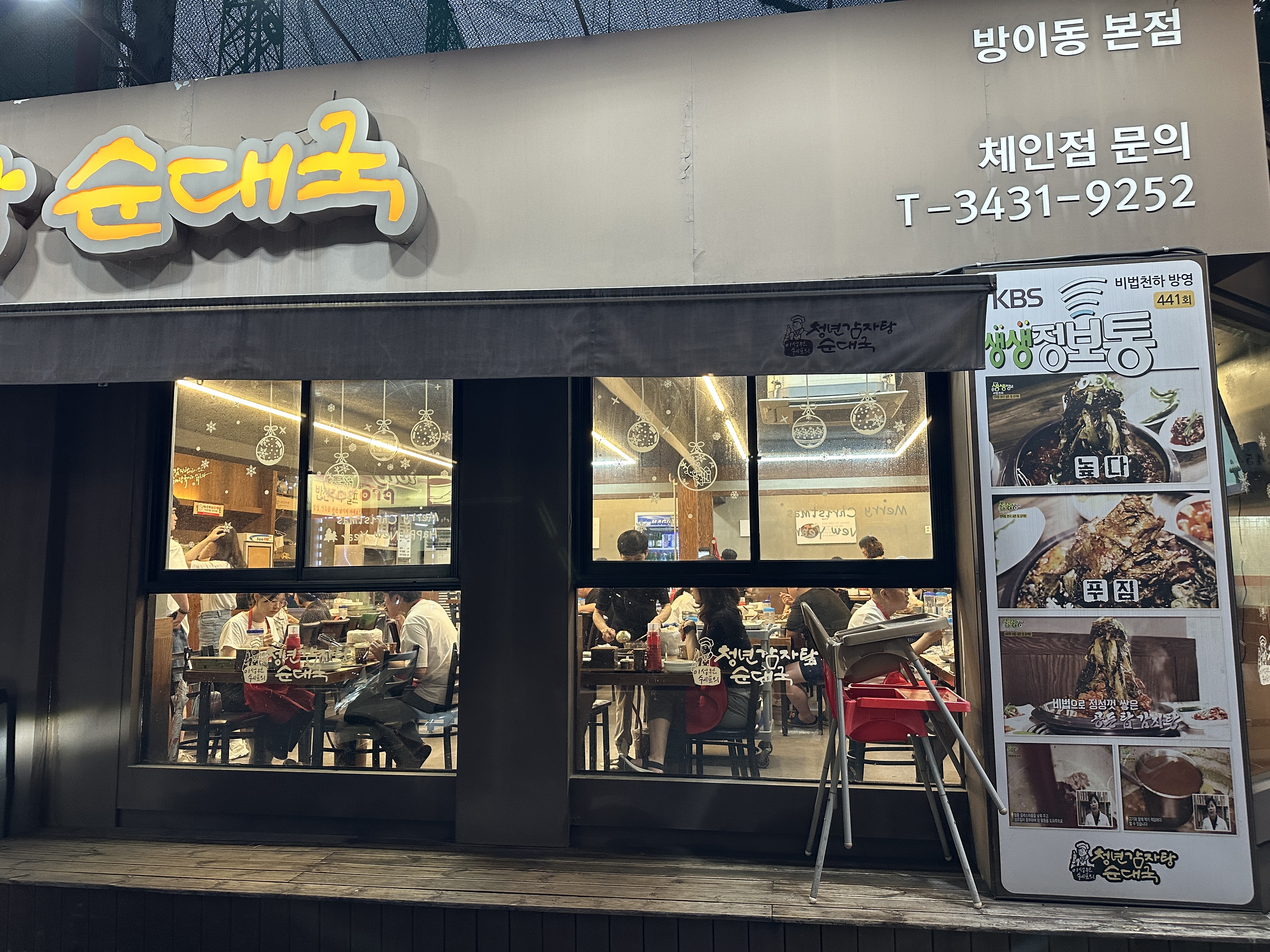 식당 앞에는 [생생정보통] 이라는 프로그램에 출연하였던 이력을 표시해두었네요. 식당 앞에 배너도 있습니다. 맛집이란 것이 굉장히 신뢰가 되는 모습입니다. 다행히 갔을 때 당시는 웨이팅은 없었지만 가게 내부에는 사람들로 붐볐습니다. 테이블이 꽉 차는 식당이었습니다.